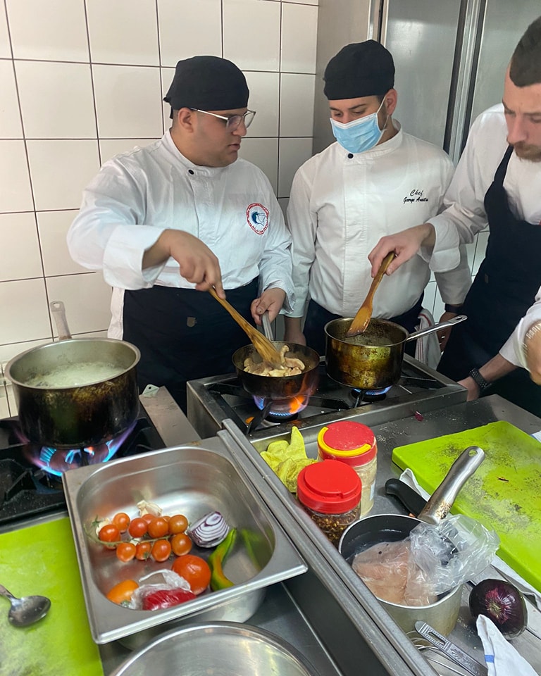 ضمن برنامج التعليم المستمر وبالتعاون مع وزارة السياحة والآثار وجمعية الفنادق العربية والمؤسسات السياحية الأخرى عقدنا دورات تدريبية وتأهيلية في مجالات متعددة للعاملين / العاملات في الفنادق. في مجالات إختصاصهم، كما تم تنفيذ العديد من دورات قصيرة تخصصيه بالمطابخ المختلفة مثل المطبخ الإيطالي المطبخ الصيني وغيرها. وتم عقد الدورات بعد التشاور والتعاون مع جمعية الفنادق العربية والمجلس الأعلى للصناعة السياحية. ونقوم بجلب محاضرين ضيوف من الخارج لعقد دورات متخصصة في مجالات عدة مثل المعجنات والخبز.